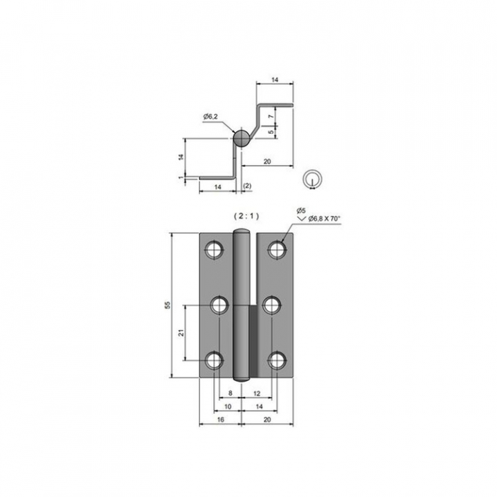 Dörrgångjärn Vänsterhängd 35x55 mm