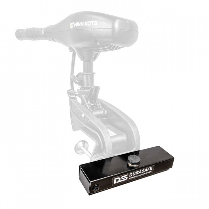 DuraSafe transom lock, ett lås speciellt framtaget för att passa de flesta aktermonterade trollingmotorerna på marknaden.