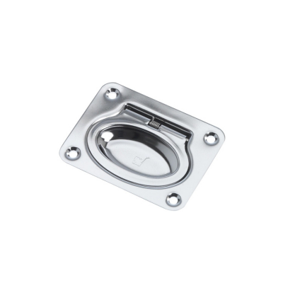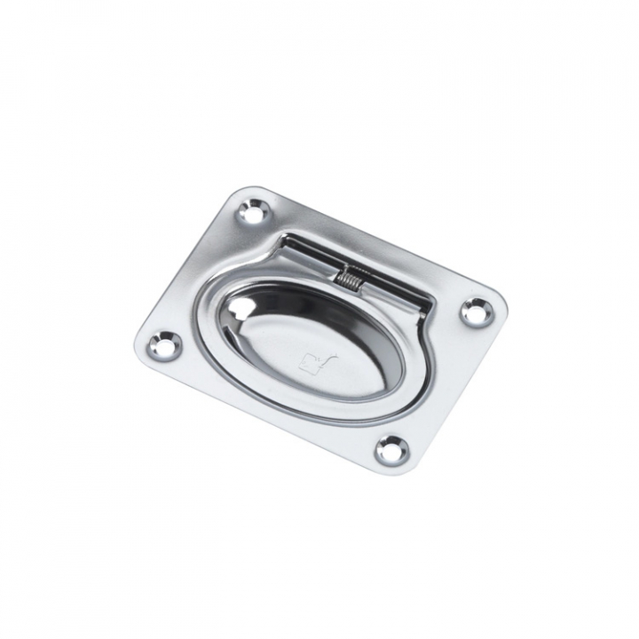 Rostfritt durkbeslag med kofferthandtag och returfjäder. Stansat för bättre passform.