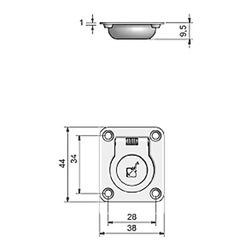 Durkbeslag luckhandtag från Roca med returfjäder, elektropolerat rostfritt. Stansade för bättre passform. - Egenskaper