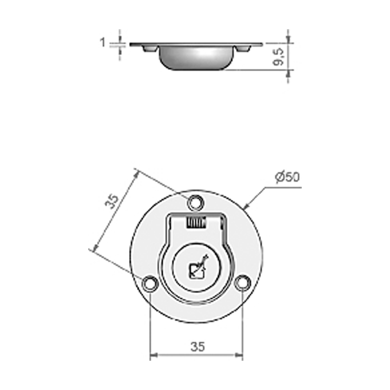 Durkbeslag Med Returfjäder - ø 50 mm