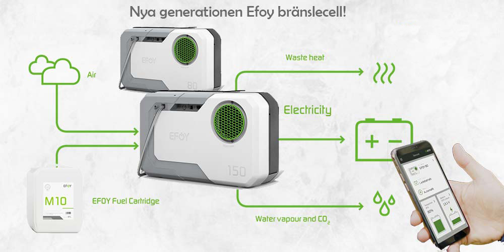 SFC Energy AG är en ledande leverantör och innovatör av bränsleceller till marin/camping marknaden och presenterar nu nästa generation EFOY-bränsleceller för husbilar, båtar och utomhusapplikationer. I tider med knappa resurser och klimatförändringar blir hållbar turism- och mobilitetskoncept allt viktigare. SFC Energy har följt och format denna trend i 20 år nu, uppnått banbrytande arbete och kombinerat toppresultat inom forskning och utveckling med banbrytande teknik för att skapa hållbara lösningar. Som svar på de ständigt ökande kraven på energiförsörjning inom fritidssektorn introducerar SFC Energy nu den nya generationen av EFOY-bränsleceller. Den femte generationen har utformats för att möta behoven hos fritidskunder ännu närmare. Behöver du en säker strömkälla så är EFOY värt att titta närmare på.
