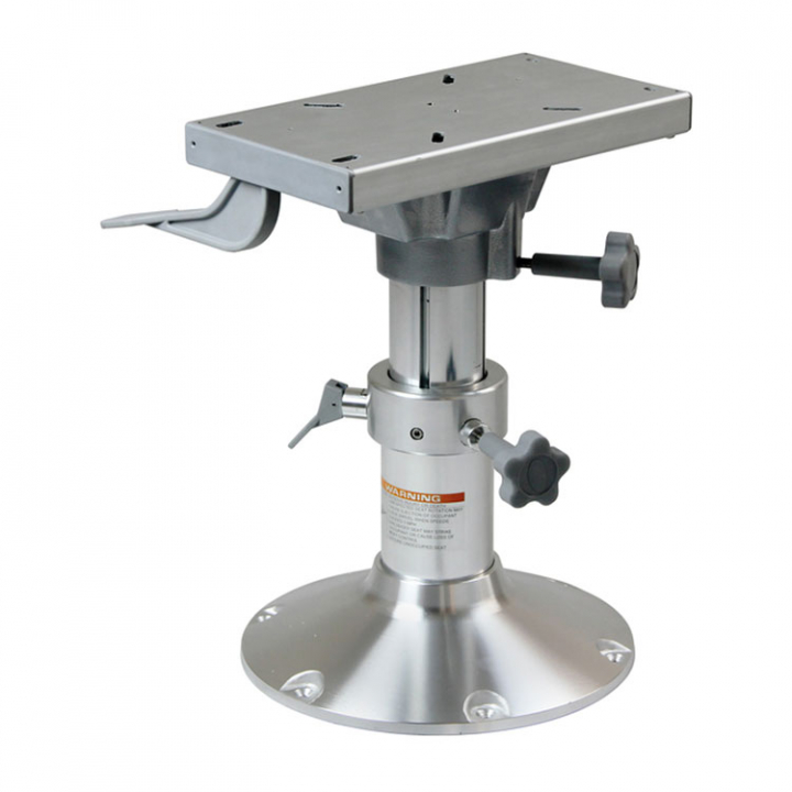 Manuellt justerbara stolstativ med integrerad glidskena och 360 svirvel. Eloxerat aluminiumstopp, högglanspolerat stativ och högglanspolerad anodiserad basplatta.