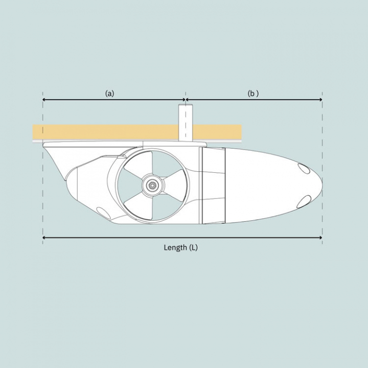 Bogpropellerns växelhus oljefyllt för livstidssmörjning och förseglat med en långtidsmekanisk tätning med keramik och kol för maximal säkerhet mot vatteninträngning.