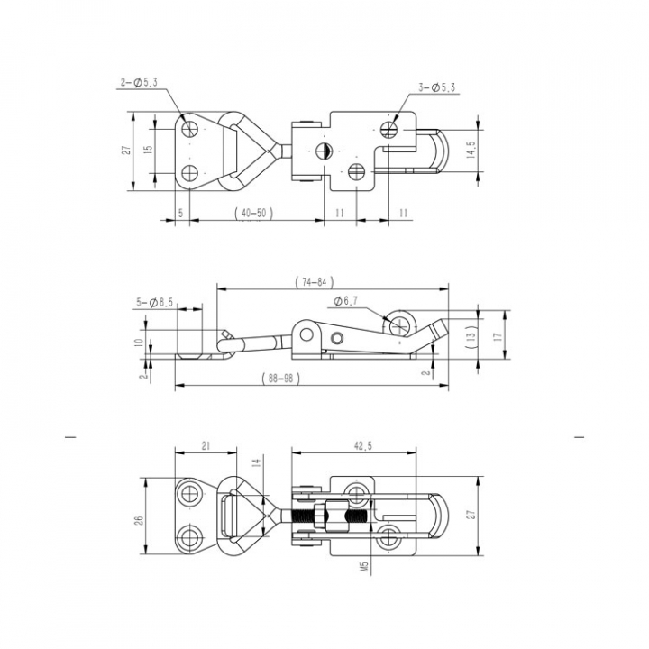 Excenterlås med lockbeslag, i AISI 316 rostfritt stål.