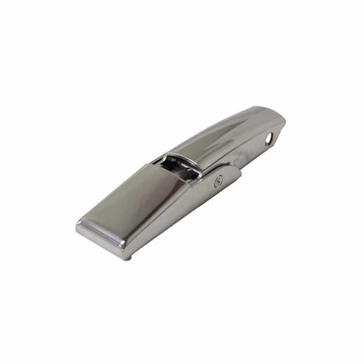 Snyggt heltäckt excenterlås i rostfritt stål AISI 304. Levereras komplett med rakt lockbeslag. Finns i 2 storlekar. - Egenskaper