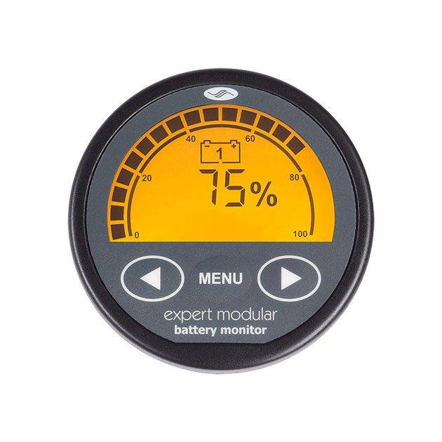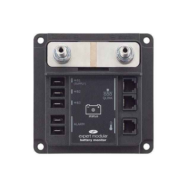 Expert Modular övervakar en batterigrupp med batteristatus, spänning, ström, amperetimmar, tid kvar, effekt, temperatur (extra utrustning). I tillägg till det så kan den mäta spänning på ytterligare två batterigrupper. Den har även programmerbara reläutgångar för att styra andra funktioner eller larma.