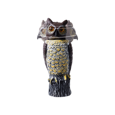 Mycket verklighetstrogen uggla med roterande huvudet som rör sig i vinden. För bästa effekt kan du flytta ugglan några gånger i veckan.