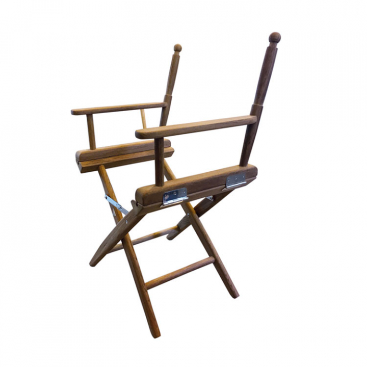 Klassisk regissörstol helt i trä med kraftiga beslag. Kan fällas ihop för enkel förvaring.