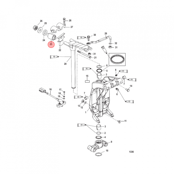 Fäste (8163851), övre till Mercury 135-200, 225-400 hk utombordare. Titta i din epc för att säkerställa att delen passar just din motor. - Egenskaper