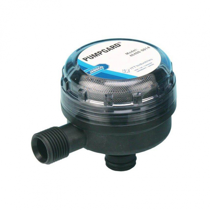 Jabsco pumpfilter för anslutning direkt i Par-Max pump och med 1/2″ anslutningsgänga för inkommande vatten.