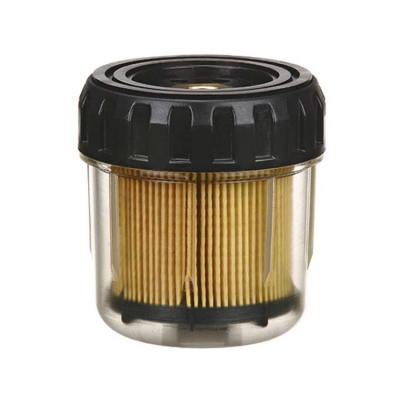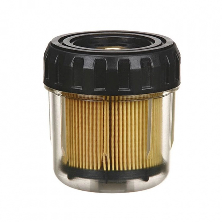 Bensinfilter topp med "tvist-on"-filter, topp antingen rostfri eller i aluminium. Ger bra skydd för motor och munstycken. 10 micron-insatsen samlar partiklar och vatten från bensinen så att munstyckena inte förstörs.