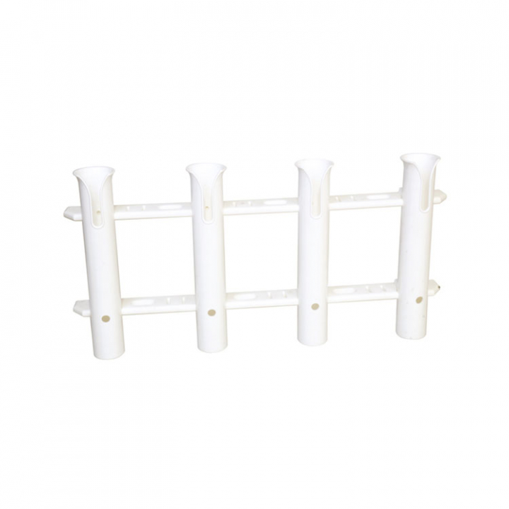 Skottmonterad fiskespöhållare i vit UV-resistent plast. Passar 4 fiskespön.
