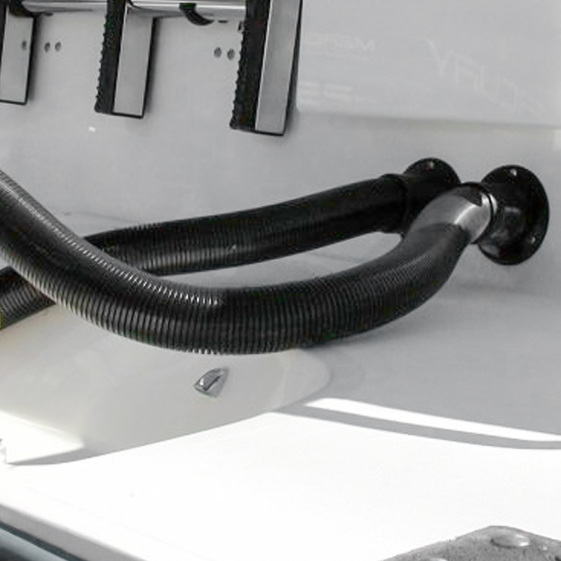 Motorbrunnsriggning skapar en ren och snygg installation genom att använda hård plastslang för att dra el och reglagekablar till motorn. De finns i två invändiga dimensioner 2 och 2½. Specialflänsar för att förhindra vatteninträngning och flänsar för bränsleslang finns som tillval.