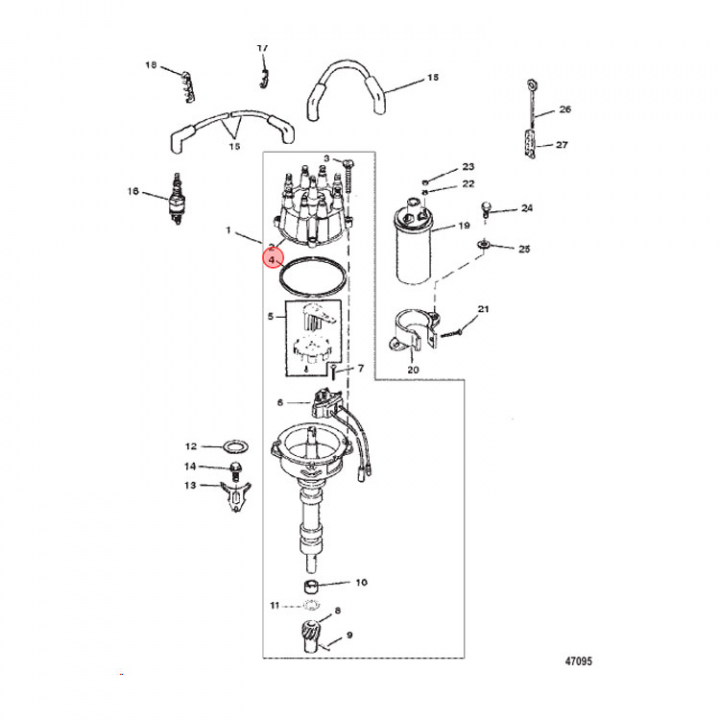 Fördelarlockspackning (805760) till fördelarlocket till Mercruiser V8 motorer. Titta i din epc för att säkerställa att delen passar just din motor.