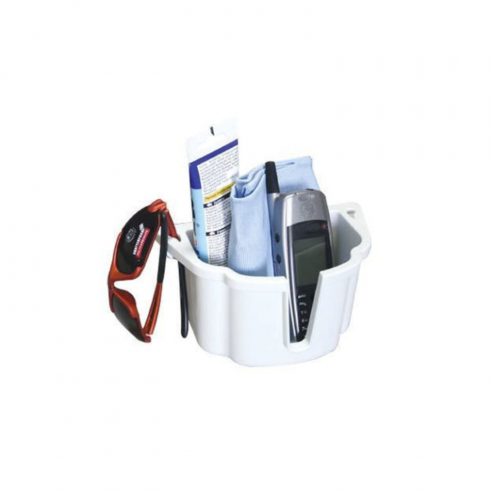 Förvaringslåda i vit plast. Store-All-produkterna kan antingen monteras horisontellt, vertikalt, monteras på skott/däck eller mantåg.