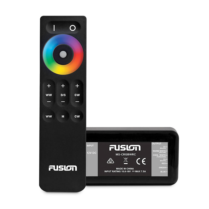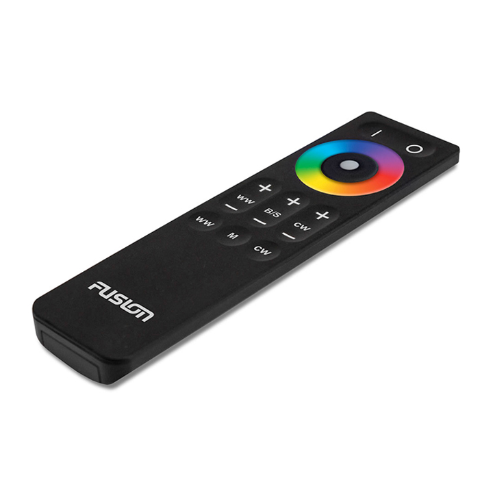 Fjärrkontroll och mottagare för att styra belysningen på Fusion CRGBW kompatibla högtalare.