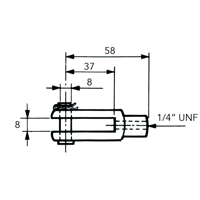 Gaffel för reglagekabel med 1/4" UNF gänga.