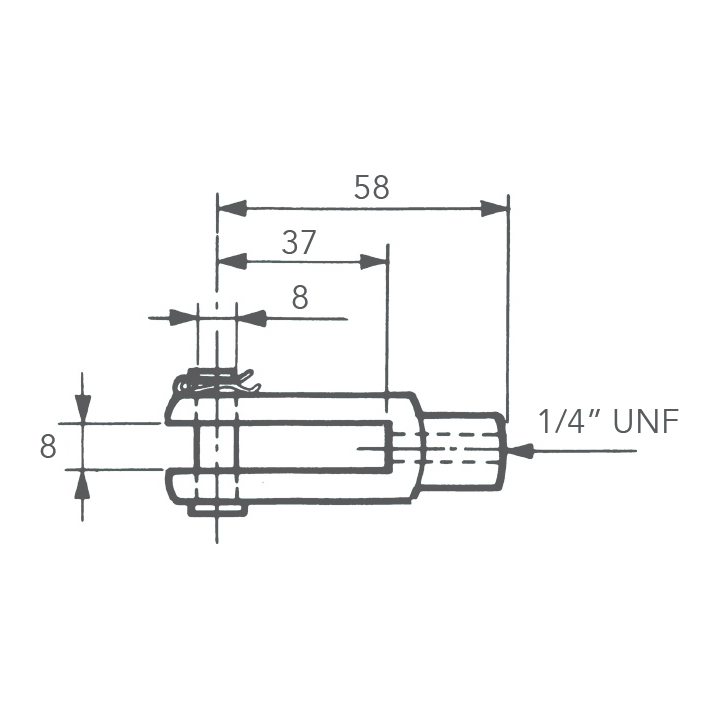 Gaffel för reglagekabel med 1/4″ UNF gänga. - Egenskaper