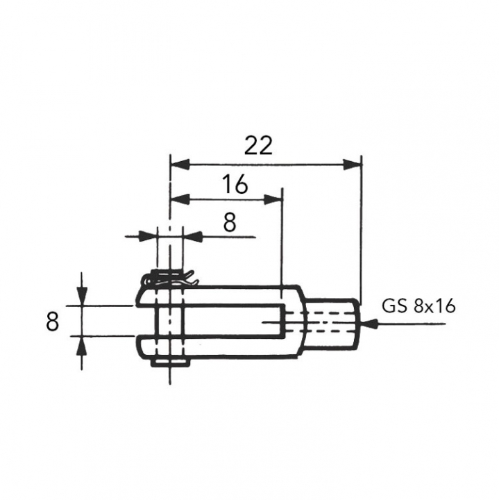 Gaffel för reglagekabel med GS 8x16 gänga.
