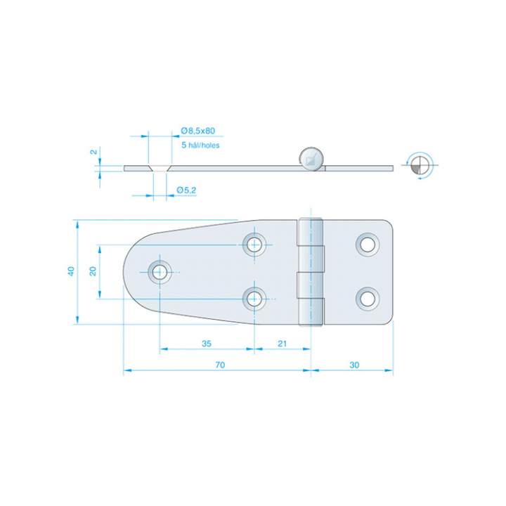 Gångjärn 100x40 mm i gruppen Inredning / Gångjärn hos Marinsystem (1052848)