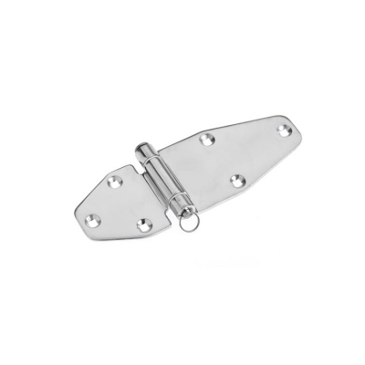 Kraftigt rostfritt gångjärn med svetsad knorra och demonterbar sprint. Monteras med försänkt skruv eller vagnsbult.