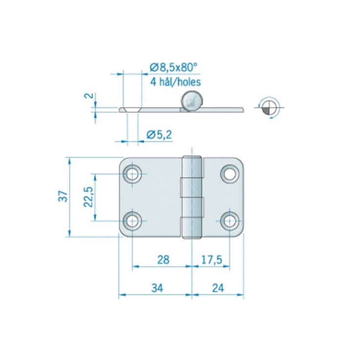 Gångjärn 59x37 mm