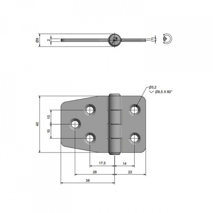 Gångjärn 59x40 mm