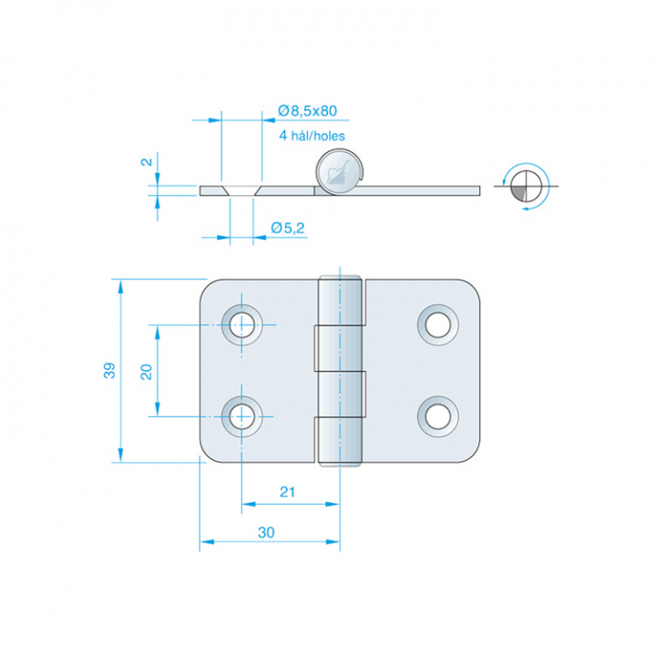 Gångjärn 60x39 mm i gruppen Inredning / Gångjärn hos Marinsystem (1052838)