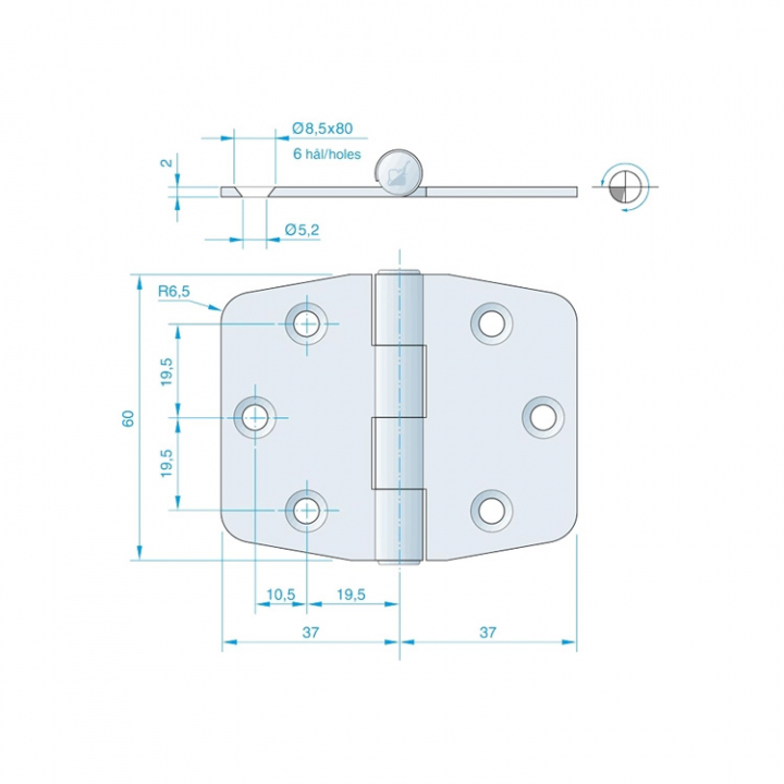 Gångjärn 74x60 mm