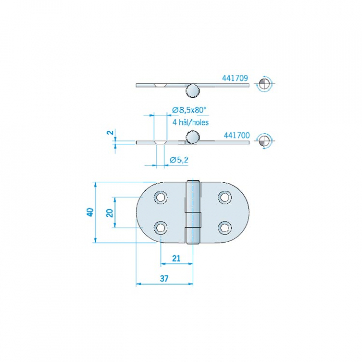 Gångjärn Centrerad Axel 74x40 mm i gruppen Inredning / Gångjärn hos Marinsystem (1052840)