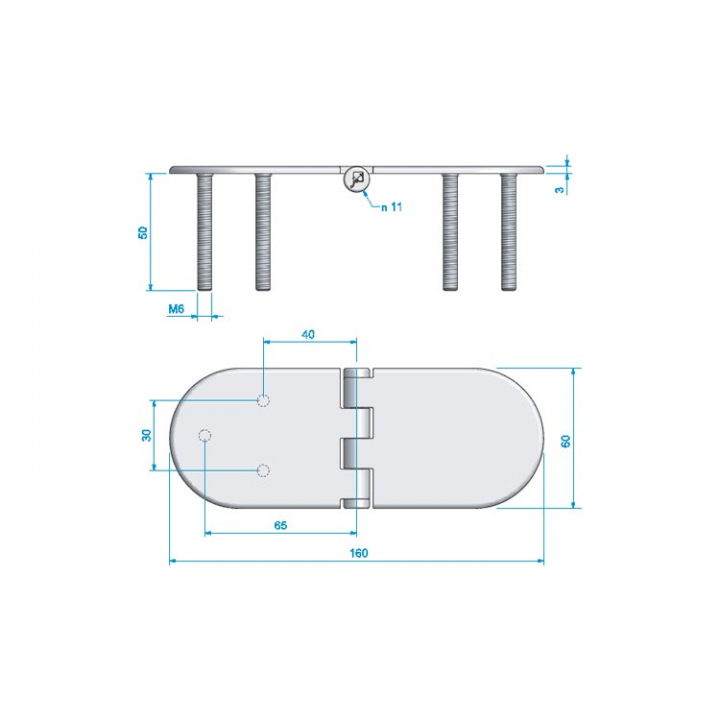 • Rostfritt gångjärn med fasta M6 skruvar 60x160 mm.