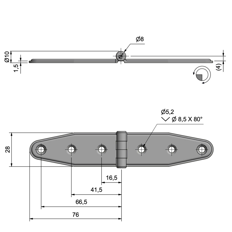 Gångjärn Rostfritt - 156x30 mm  i gruppen Inredning / Gångjärn hos Marinsystem (1052817)