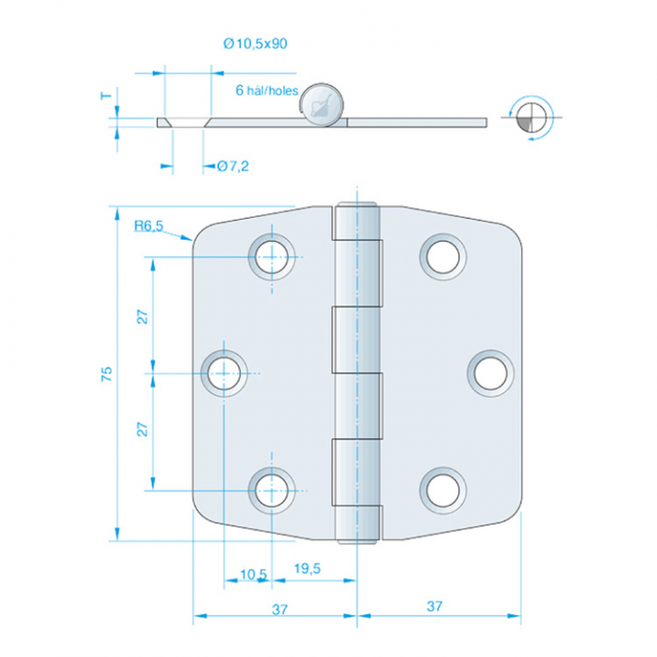 Gångjärn Rostfritt - 74x75 mm i gruppen Inredning / Gångjärn hos Marinsystem (1052808)