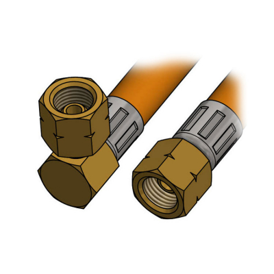 Maskinpressade gasolslangar EN 16436-2 med vänstergänga. Gasolslang med 1/4" vänstergängade kopplingar. En rak och en vinklad.