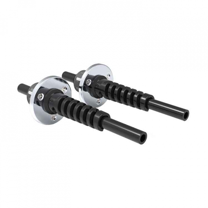 Seastar genomföringar i UV-beständig plast med rostfria täck kåpor som kan eftermonteras på en Seastar hydraulslang med pressade kopplingar, skapar en snygg montering.