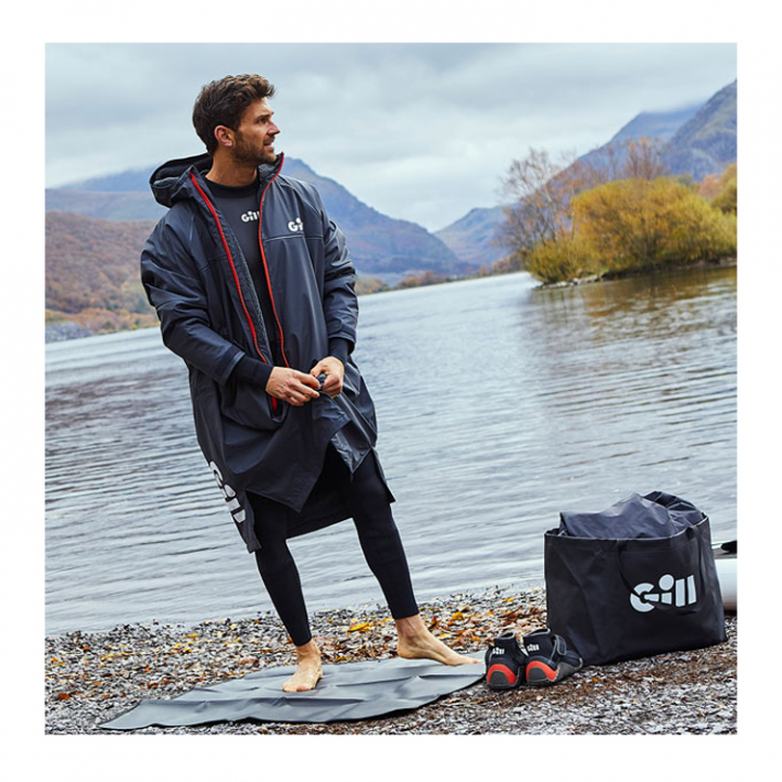 En multifunktionell och praktisk väska+matta vid ombyte utomhus. Mattan är gjord av ett hållbart PVC material som håller dina fötter torra eller kläder och våtdräkter fria från smuts och sand. Mattan viks enkelt ihop och förvaras i väskans ytterfack.