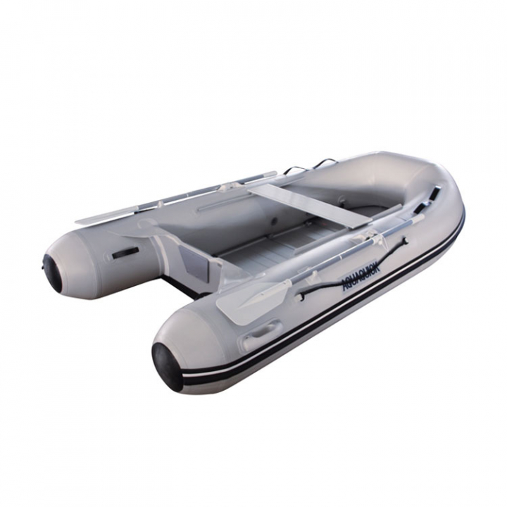 Dessa egenskaper säkerställer noggrann och stabil manövrering. Särskilda aluminiumdurkar med grovt mönster. Aquaquicks båtar har en kraftfull bärväska, reparationssats, fotpump och en lina.