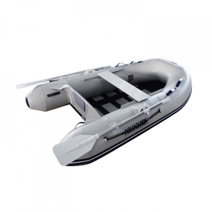 Aquaquick gummibåt med ett lättvikts-lamelldurk som rullas ihop med båten.