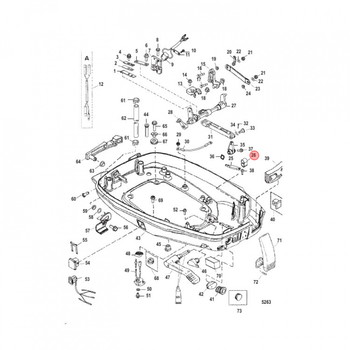 Hållare (39519) till Mercury/Mariner 15-275 hk utombordare, en liten komponent med två hål där gas- och växelreglagekablarna fästs innan de ansluts till motorn. Det är alltså en liten rektangulär hållare som håller kablarna snyggt på plats och guidar dem in i motorn.