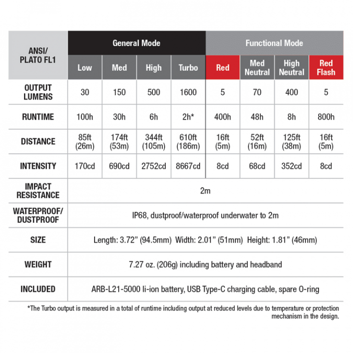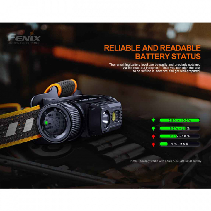 • Inkluderar 1 st Fenix ARB-L21-5000 Li-ion-batteri, kompatibelt med ett 18650 Li-ion-batteri (med en ALF-18 batterihållare)