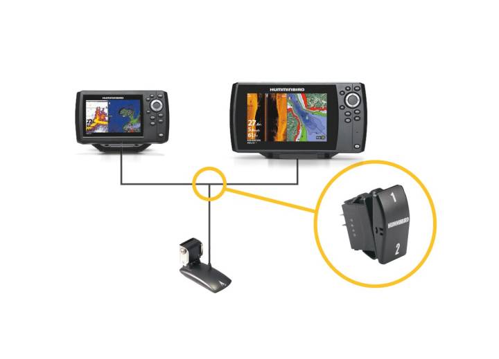 Ekolodsväljaren ger möjlighet att ansluta två ekolod till en givare. Idealisk när två instrument är monterade.