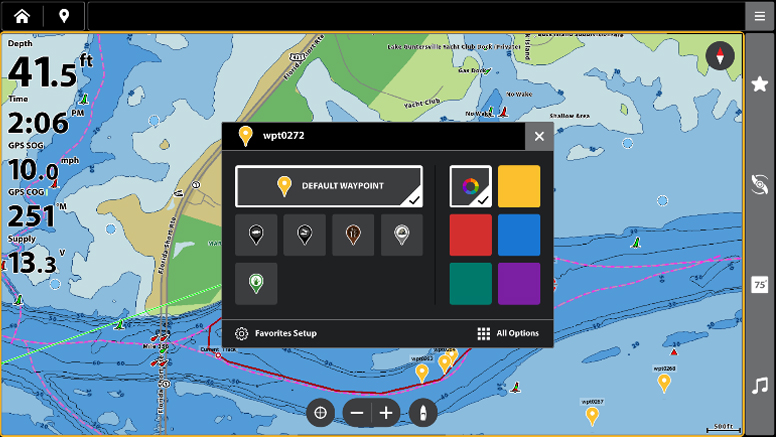 Hanteringen av waypoints är enklare än någonsin på XPLORE. Med funktionen "Draw-to-Select" kan man enkelt välja flera waypoints direkt i kartan för mass-redigering, gruppera, välj färger och ändra ikoner. Exportera och importera enkelt waypoints, rutter och spår med One Boat Network appen på telefonen.