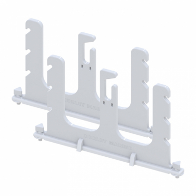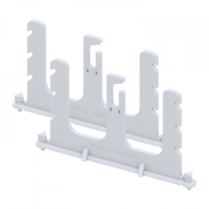 Hurley SUP-stativ med 2 hållare för SUP-brädor upp till 6" tjocklek. Mellan SUP-brädorna finns plats för förvaring av paddlar. Stativet är lätt att ta bort när det inte används.