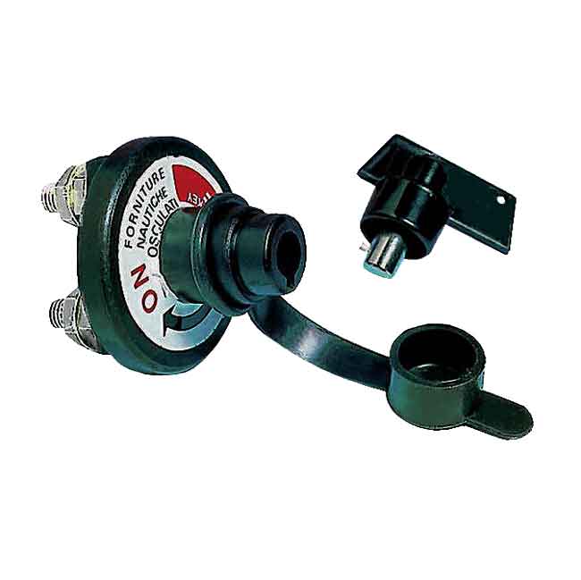 Tillverkad i svart polykarbonat monterad med vattentätt gummilock, nyckel i förnicklad mässing med stänktätt hölje.