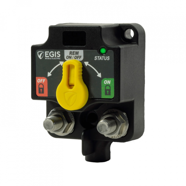 Kompakt, vattentät fjärrstyrd huvudströmbrytare som fungerar både i 12V och 24V system genom automatisk avkänning. Den är även utrustad med en spak för manuell justering av till och från.