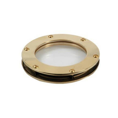 Hyttventiler i polerad mässing eller kromad mässing. Fast modell med en diameter på 150 mm. CE-godkänd.