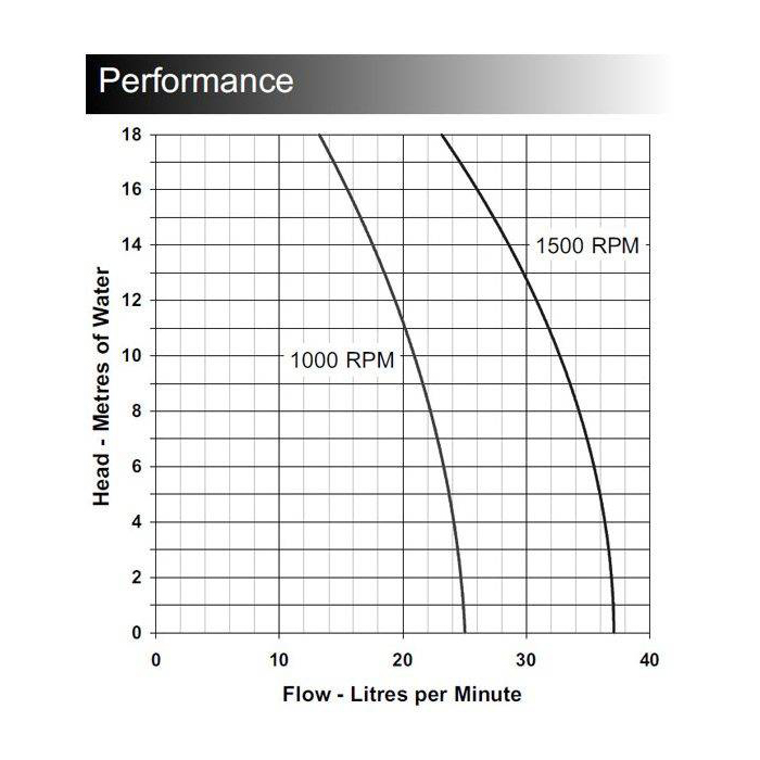 Pumphuset passar motorer med IEC71 standard D80. Kapacitet på pumphus är angivet som maxkapacitet vid 1500 rpm. Kapaciteterna avser pumpning av vatten vid 20C med neoprenimpeller, vid högre temperatur eller viskositet sjunker kapaciteten.