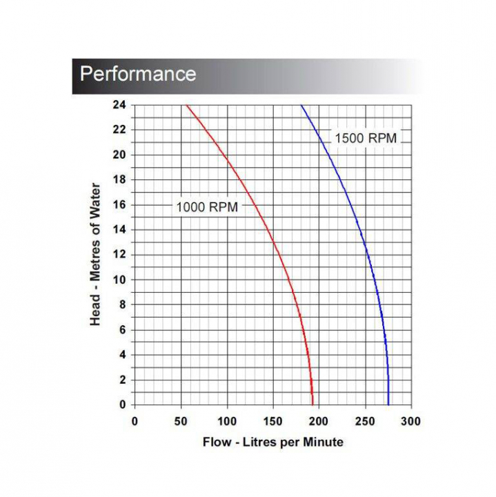 Pumphuset passar motorer med IEC71 standard D100. Kapacitet på pumphus är angivet som maxkapacitet vid 1500 rpm. Kapaciteterna avser pumpning av vatten vid 20C med neoprenimpeller, vid högre temperatur eller viskositet sjunker kapaciteten.