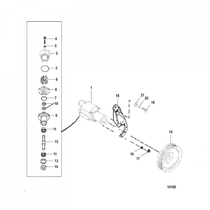 Impellersats (59362T6). Denna sats med 4 delar innehåller impeller, platta och O-ringar för att ersätta dessa delar i Mercruiser-motorer med motormonterade havsvattenpumpar.